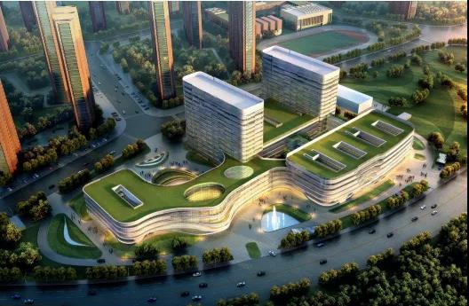 新龍澤院區(qū)項目場地為不規(guī)則的梭形,周邊環(huán)境復(fù)雜,對此,方案在前期規(guī)劃時結(jié)合城市空間序列研究、場地環(huán)境分析、聲環(huán)境模擬等方面解決了項目本身的復(fù)雜問題。方案以“城市客廳”為核心 ,將醫(yī)療行為與景觀空間融為一體,同時對各個環(huán)節(jié)進(jìn)行把控,將低碳環(huán)保、節(jié)約成本、精準(zhǔn)施工的理念貫穿始終。