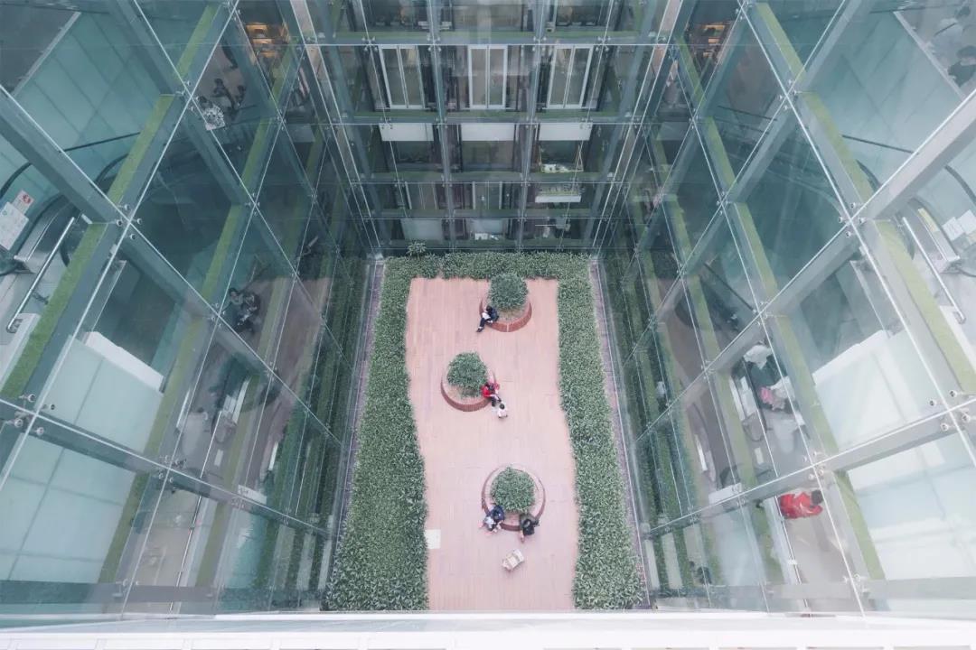 設(shè)計(jì)將庭院綠化、屋頂綠化、入口廣場(chǎng)綠化等分散的景觀系統(tǒng)引入建筑,同時(shí),分散的庭院綠化與醫(yī)院交通軸平行,采用退臺(tái)式綠化平臺(tái),最大化每層候診空間的采光和綠化景觀,拉近患者與大自然的距離,提升空間感受的豐富性,形成一個(gè)平靜和充滿治愈力的建筑空間。