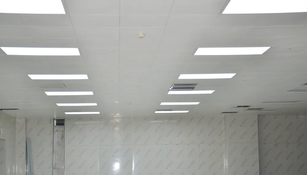 鋪放式天花便于天面頂部空間設(shè)備檢修、維護,燈具的維護和更換更加便利。帶吸音紙的微孔即可以防塵,又可以在全部硬質(zhì)表面的機房環(huán)境中起到一定的吸音作用。
