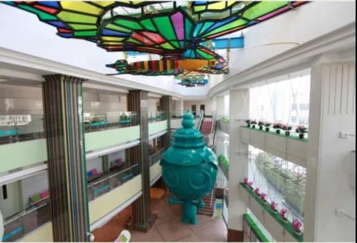 例如杭州市兒童醫(yī)院的健康管理中心屬于國(guó)內(nèi)較早設(shè)置的專門醫(yī)療服務(wù)機(jī)構(gòu)。設(shè)計(jì)團(tuán)隊(duì)圍繞健康管理中心的功能和空間布局設(shè)計(jì)了體現(xiàn)和反映生命總主題的以森林生靈為內(nèi)容的5個(gè)子主題。其中,核心主題為《森林之歌》,《森林之歌》的設(shè)計(jì)是以豐富活潑、歡快跳躍的各類鳥兒為題材,通過(guò)形態(tài)各異。五顏六色、歡快起舞的群鳥形態(tài),表現(xiàn)出生命的無(wú)限活力。
