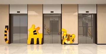 方案對(duì)傳統(tǒng)《十二生肖》造型形象運(yùn)用了正負(fù)形態(tài)轉(zhuǎn)換的表現(xiàn)方式.進(jìn)行重構(gòu)和重組.吸納當(dāng)代藝術(shù)中構(gòu)成手法和色彩表現(xiàn)力,并選用當(dāng)代新型的有機(jī)材料進(jìn)行制作和呈現(xiàn),把渾厚的生肖動(dòng)物造型形態(tài)與多變的視覺(jué)認(rèn)知融為一體.有效地重塑和活化了呆 無(wú)趣的候診空間,就診兒童通過(guò)對(duì)十二生肖形象的尋找,每個(gè)人都可以對(duì)號(hào)入座,找到與自己的屬相相應(yīng)的對(duì)象,這樣可以促使孩子們?cè)谟^看中,觀察和體驗(yàn)周邊活潑可愛(ài)、醒目親切的藝術(shù)氛圍。透過(guò)對(duì)豐富色彩和通透造型的認(rèn)知過(guò)程,增添了對(duì)視覺(jué)的知識(shí)建構(gòu)和候診的樂(lè)趣,讓乏味的候診變得豐富而有趣。